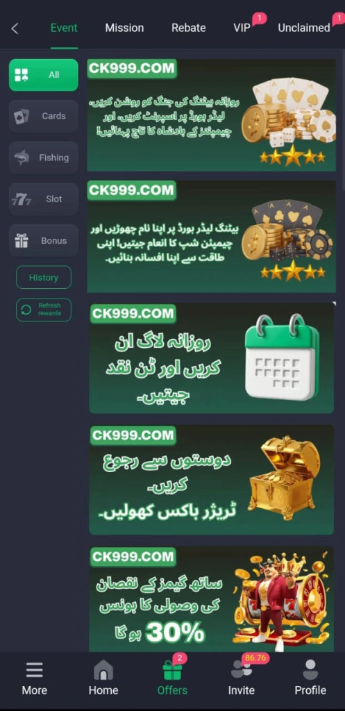 If you invite your friends and they sign up using your referral link, CK999 rewards you with bonus credits. This is a win win you get free rewards, and your friends get introduced to the game. In Pakistan, where playing with friends and cousins is common, this feature is especially popular.